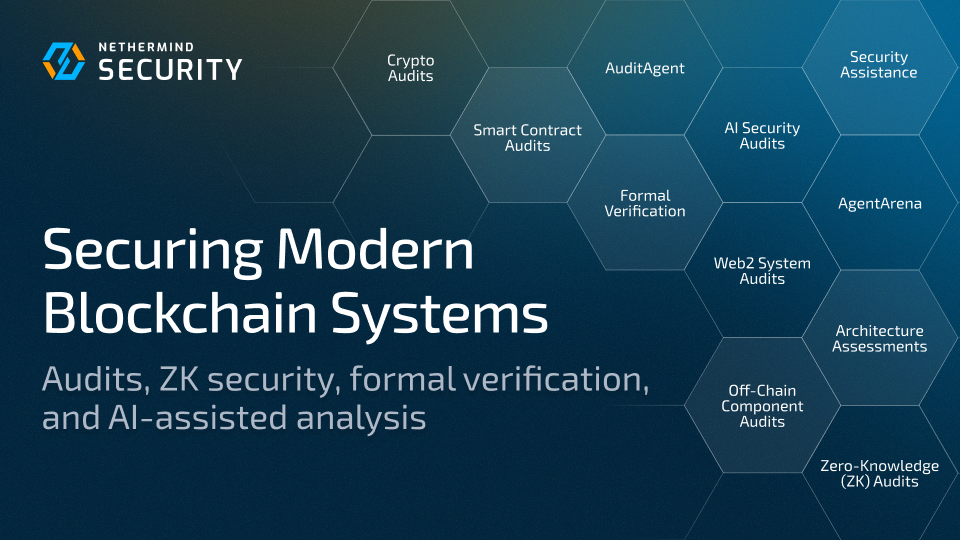 Discover our security services for Ethereum and Starknet applications, spanning smart contract audits, formal verification, and more. Our security researchers have a strong academic background and frequently collaborate on large infrastructure security projects.