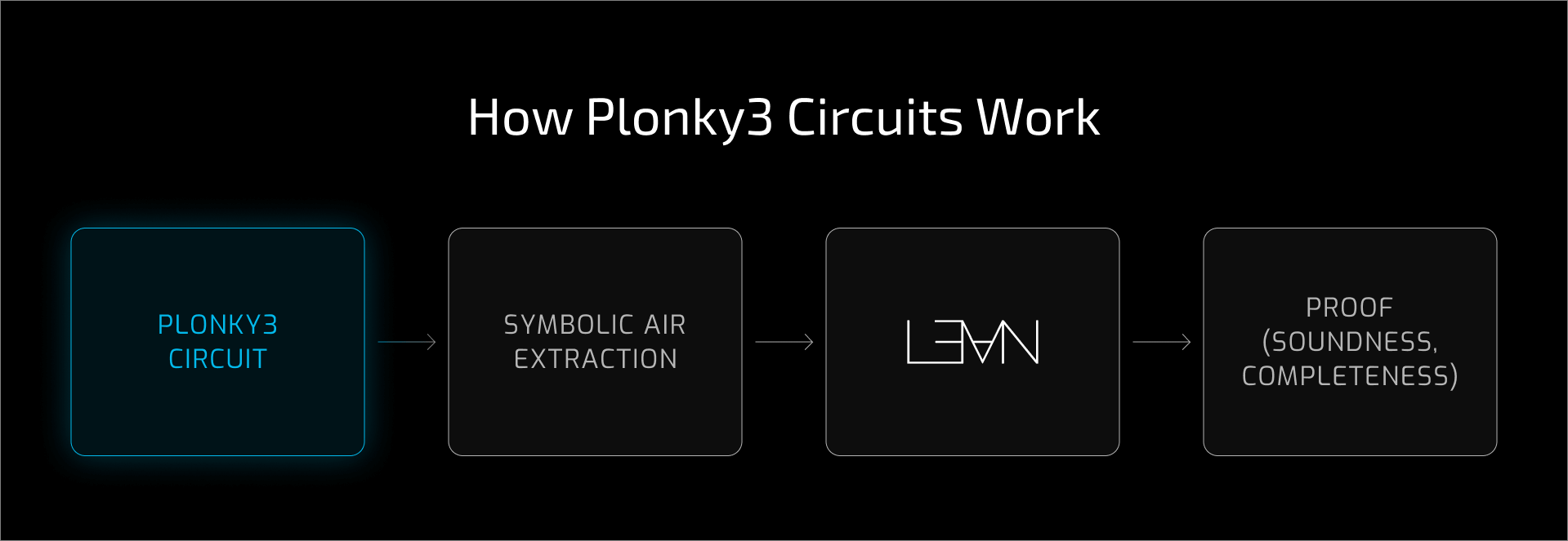 We're introducing CertiPlonk: a framework for extracting and formally verifying constraint systems from the Plonky3 zkDSL using the Lean proof assistant. The framework bridges circuit implementation with mathematical proof, enabling developers to verify correctness properties without changing their code.