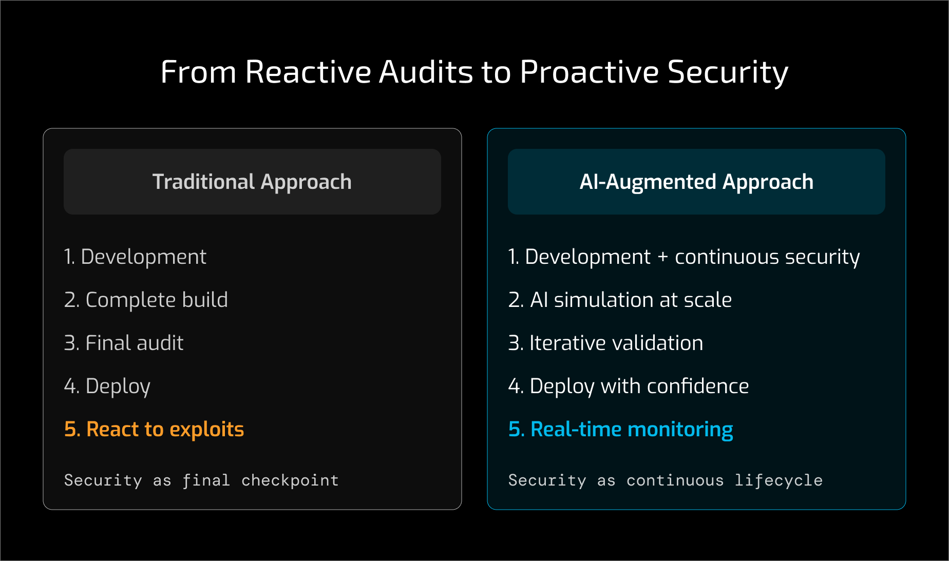 Security can no longer be treated as a final audit step. As security shifts upstream, teams are increasingly engaging in security reviews earlier in the development process, rather than treating audits as a final checkbox before launch. It must become an adversarial process that runs in parallel with development from the first line of code. This requires tighter collaboration between developers and security researchers throughout the lifecycle.